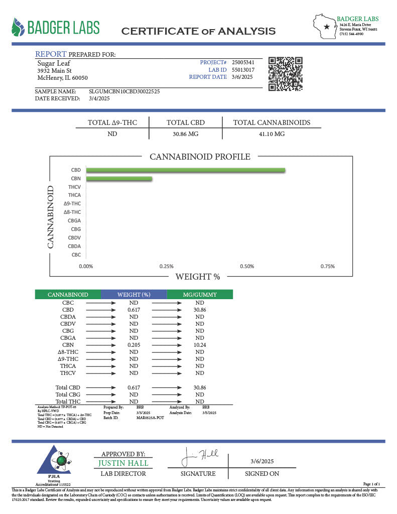 - 800 MG Total (10 MG CBN + 30 MG Full Spectrum CBD Per Gummy)