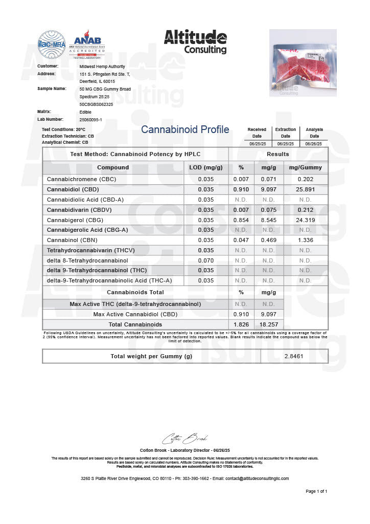Cannformis All Natural 1:1 CBG/CBD 50mg Broad Spectrum Gummies 1500mg 30ct
