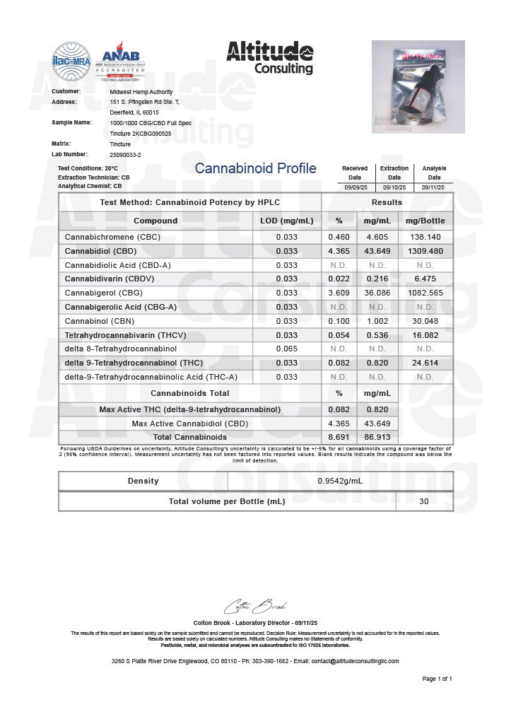 Discover the harmonious blend of two premium, Full Spectrum cannabinoid oils combined with organic MCT oil and our exclusive terpene infusion. This exquisite fusion not only ensures a delightful taste but also maximizes absorption, delivering the full potential of CBD and CBG to your wellness routine.