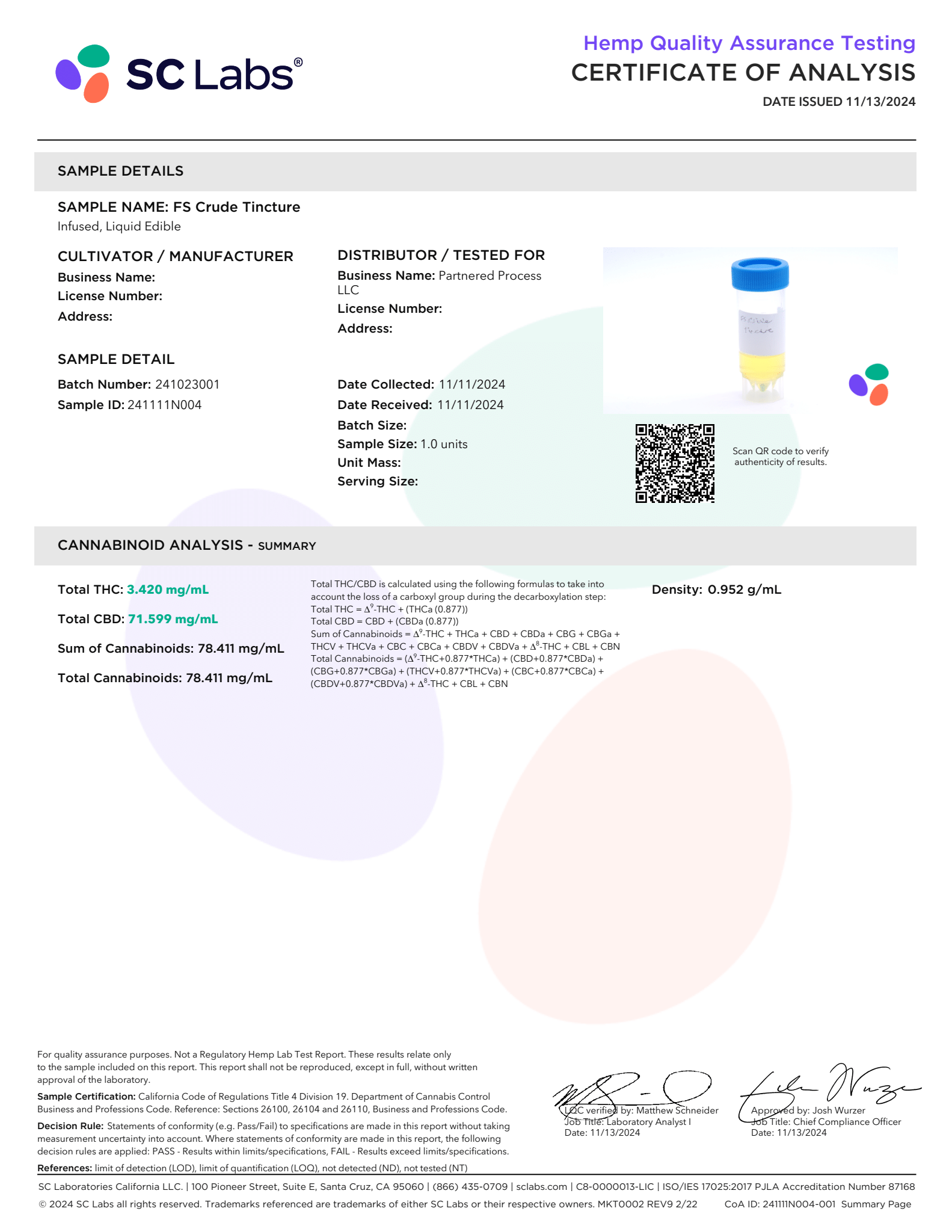 Partnered Process Full Spectrum CBD 2500mg Tincture Unflavored