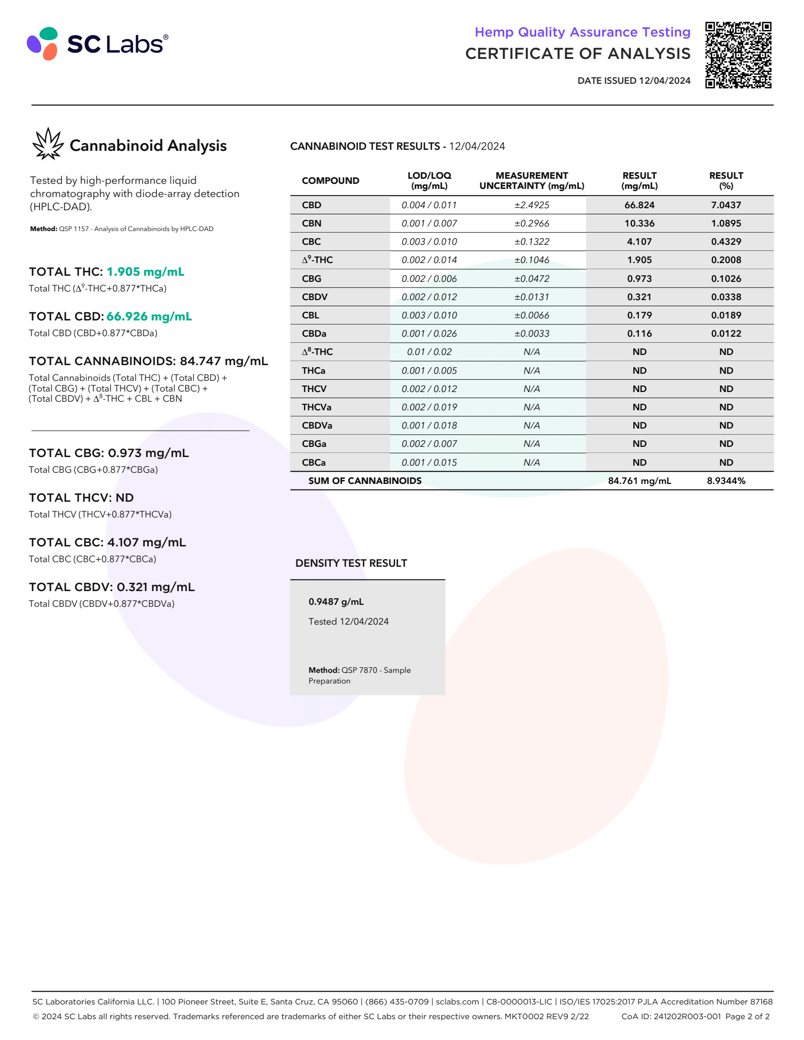 - Dominant terpenes include Alpha-Humulene, Beta-Caryophyllene, D-Limonene, Linalool, Myrcene (more than 20 terpenes total)