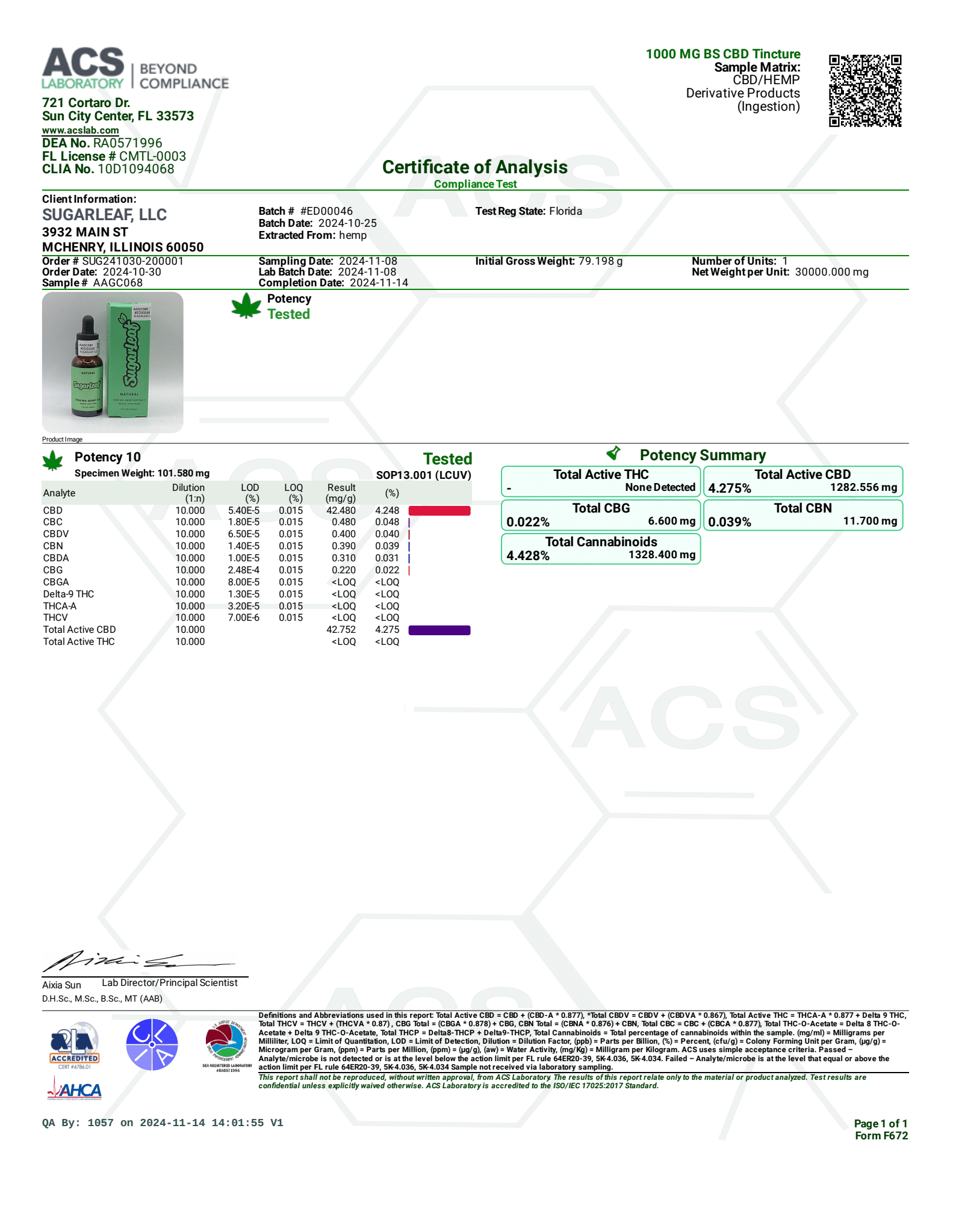 Sugarleaf Broad Spectrum CBD Tincture - Natural Flavor 1000mg