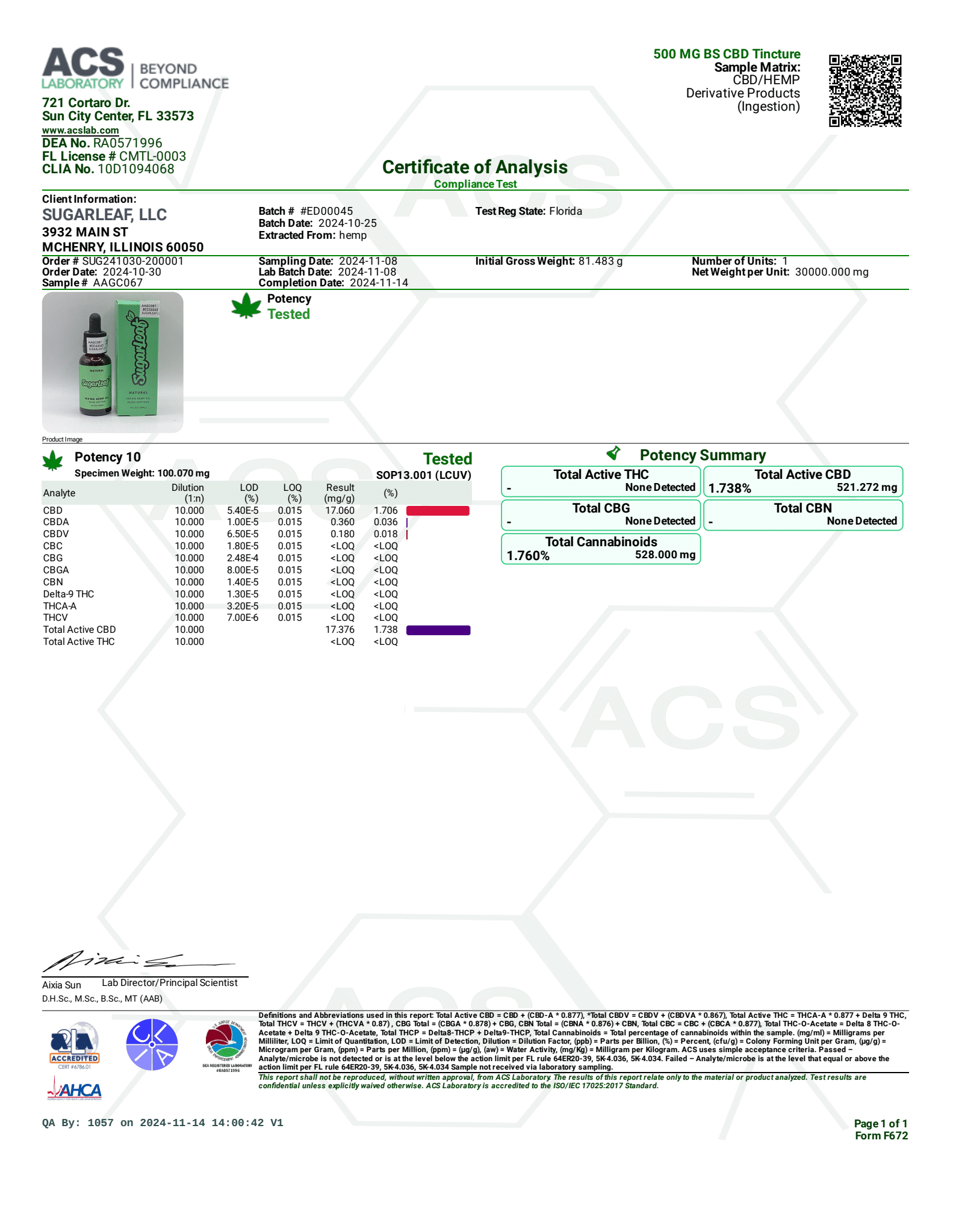 Sugarleaf Broad Spectrum CBD Tincture - Natural Flavor 500mg