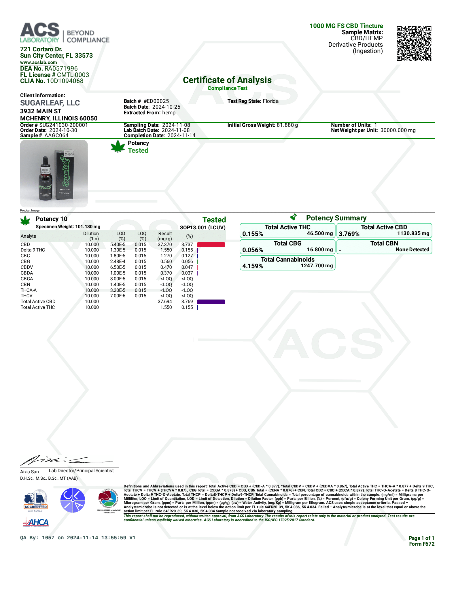 Sugarleaf Full Spectrum CBD Hemp Oil - Natural 1000mg