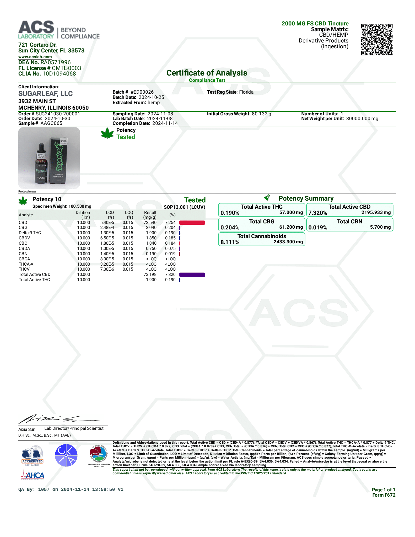 Sugarleaf Full Spectrum CBD Hemp Oil Tincture - Peppermint 2000mg