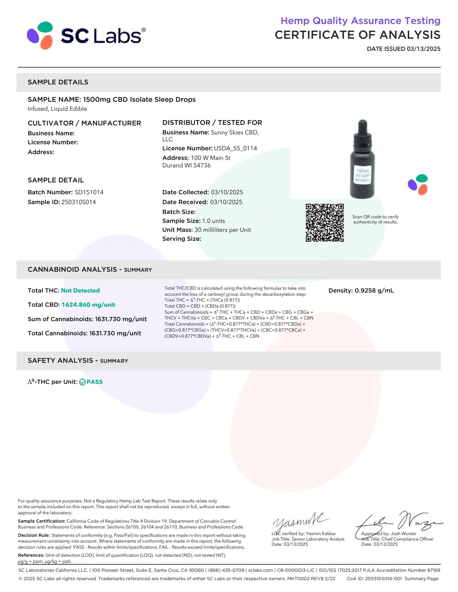 Sunny Skies 1500mg CBD Isolate Sleep Drops