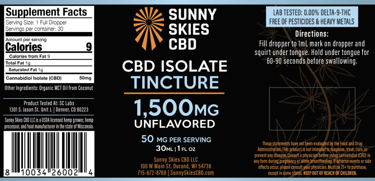 Sunny Skies 1500mg CBD Isolate Tincture Unflavored