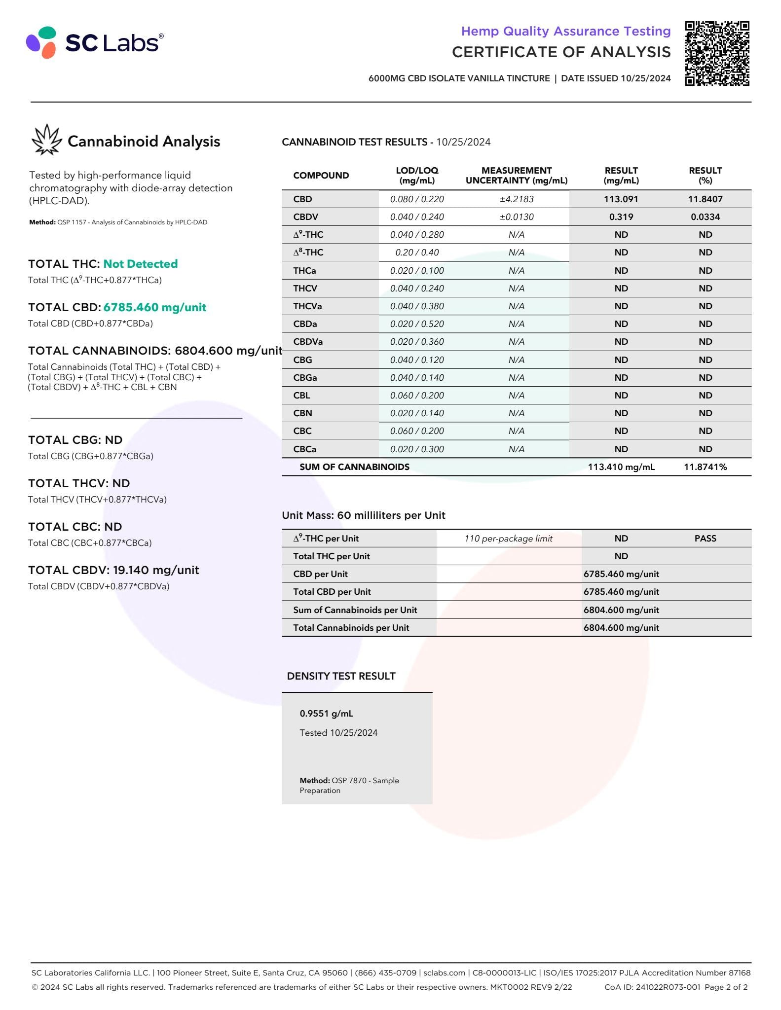 Sunny Skies 6000mg CBD Isolate Tincture Vanilla 60ml