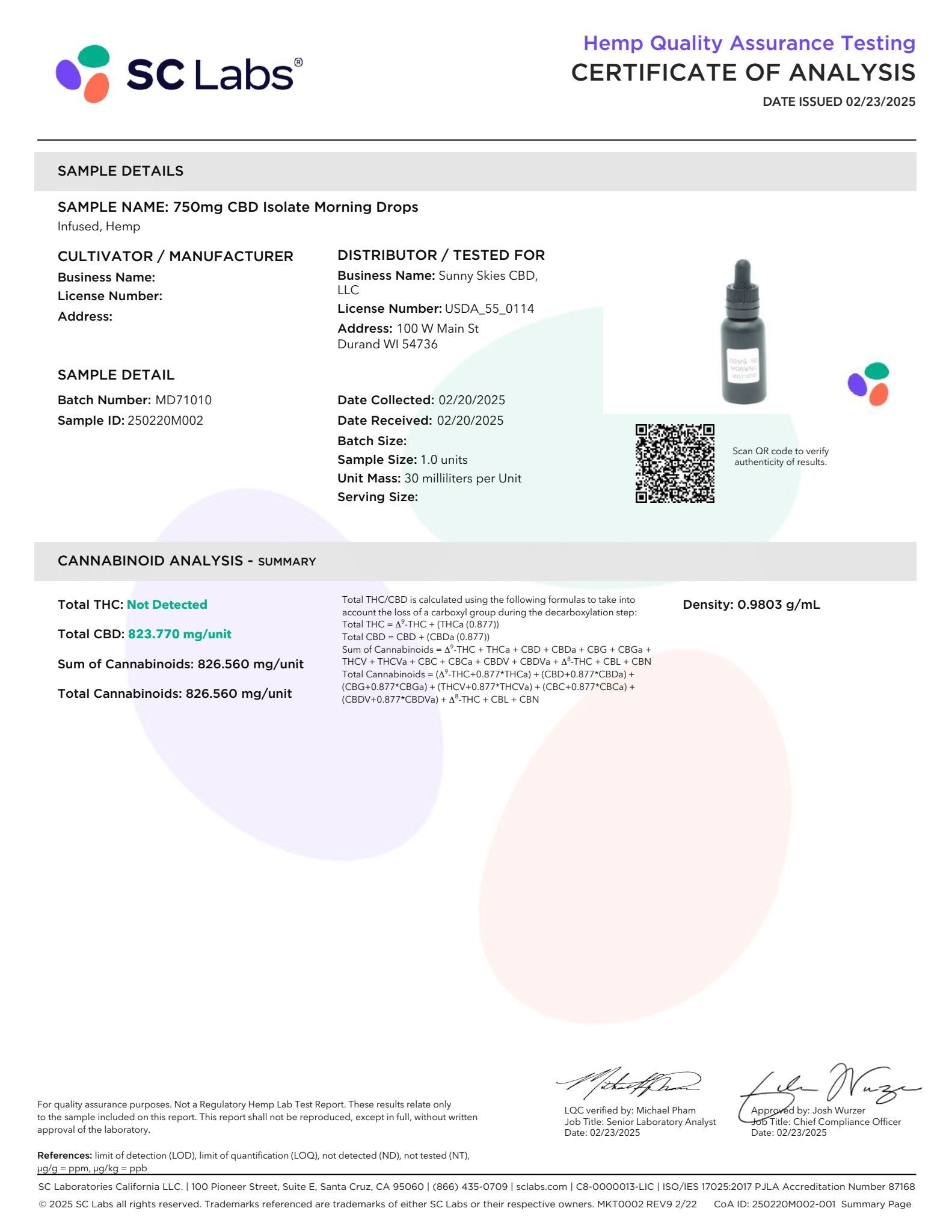 Sunny Skies 750mg CBD Isolate Morning Drops