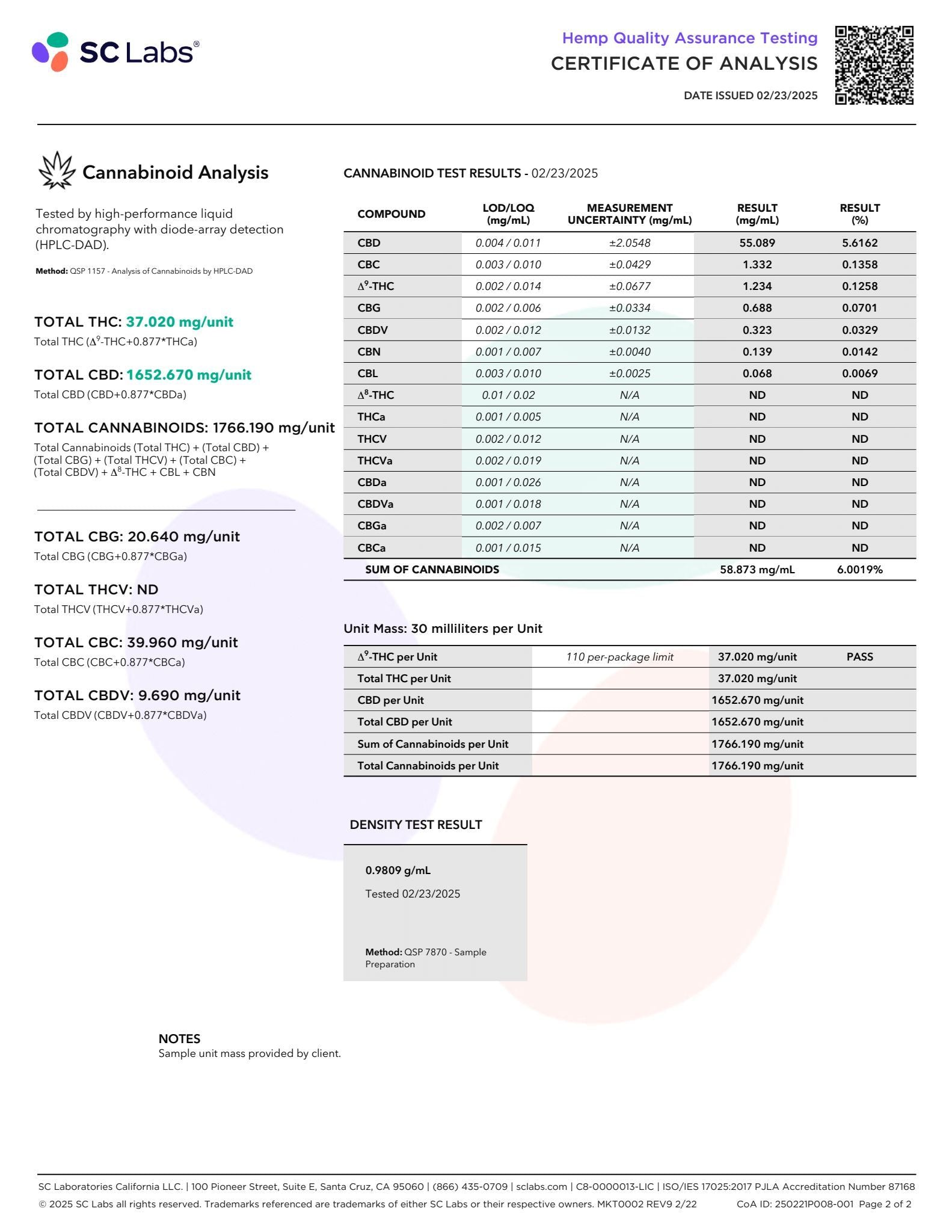 -Ingredients: Full-Spectrum CBD Distillate, Organic MCT Oil.