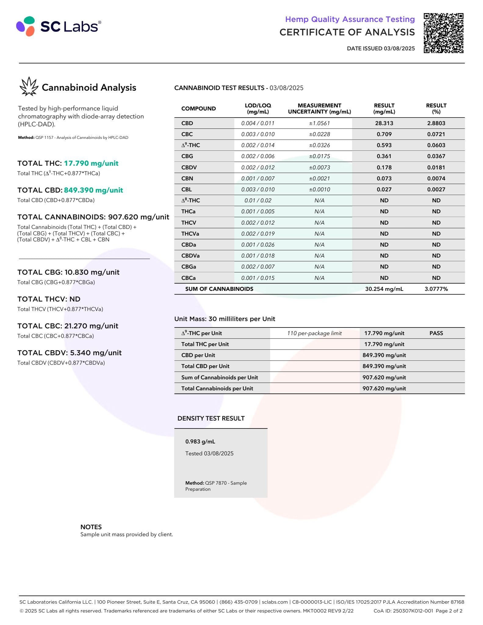 -Ingredients: Full-Spectrum CBD Distillate, Organic MCT Oil.