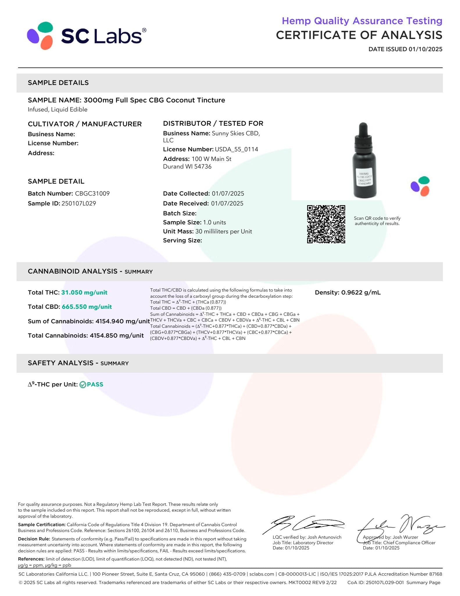 Sunny Skies Full Spectrum CBG 3000mg Tincture Coconut